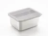 清潔に使えて、すばやく冷やせるステンレス製のフードコンテナー。   においがつきにくく、冷蔵、冷凍保存が短時間でできます。   フタにある窓から中身が透けて見えます。