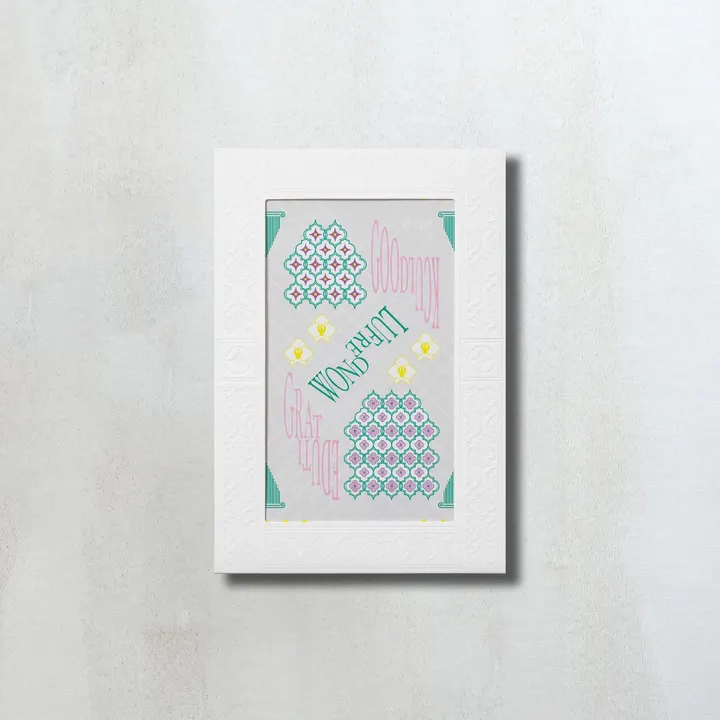 ~Relieful~ 昔ながらの活版印刷を現代風にアレンジした紙の額縁です。 活版印刷特有の「印圧による紙の凹凸が感じられる質感」を生かして、レリーフ(浮き彫り)加工を表現しました。 柄ごとに使用する紙の種類を変えることで、紙と活版が織りなす、繊細ながらも、どこか温かみのあるデザインの違いを楽しむことが出来ます。部屋の壁面を飾るアートフレーム、写真やちょっとした贈り物をいれる封筒など、インテリアだけでなくギフトとしてもお使いいただけます。 【バリエーション】 A:水彩タッチで繊細な雰囲気の花柄です。 B:オレンジがベースの北欧インテリア風の絵柄です。 C:幾何学模様のようなモールディング風の絵柄です。 【SIZE】H111×W161mm 【PRINT】活版印刷1色(しろ) 【PAPER】スノーブルFS 273k 【OTHER】グラフィック(1枚)、紙スタンド、取扱説明書 【CREDIT】有限会社 セメントプロデュースデザイン ※写真はイメージとなります。