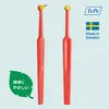 三角ヘッドでフィラメントが長いタイプのタフトブラシ。 矯正器具の周りや根分岐部、最後臼歯遠心など、ブラッシングが困難な箇所にポイントで当てたい場合に最適です。矯正器具のワイヤーやインプラント周辺にもオススメ。