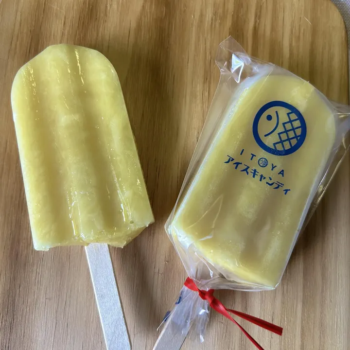 ・パインアイスキャンディー 果実感あふれるパインアイスキャンディー。 甘酸っぱいパイナップルの香りと、すっきり爽やかな味わいが広がります。 ジューシーで後味さっぱり、暑い日にぴったりの一本です。