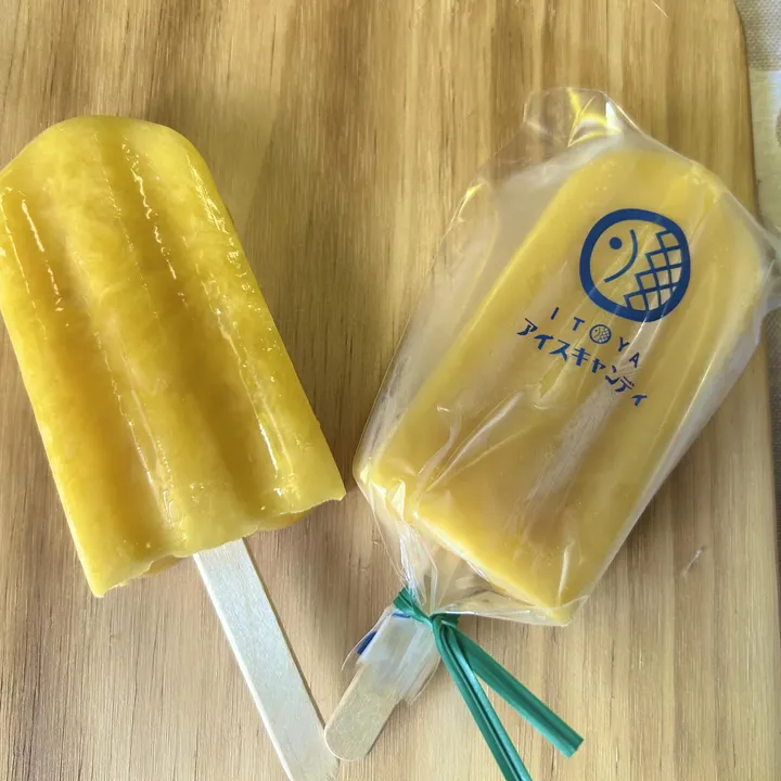 ・マンゴーアイスキャンディー トロピカルなマンゴーアイスキャンディー。 マンゴーの濃厚な甘みと香りが、口いっぱいに広がる贅沢な味わい。 なめらかな口どけと、フルーティーな余韻が楽しめる、南国気分の一本です。