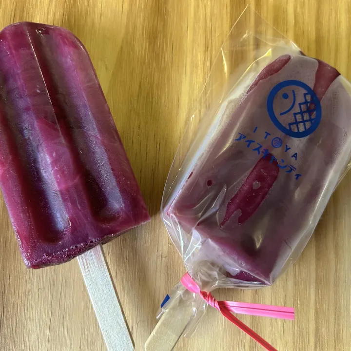 ・ぶどうアイスキャンディー 果汁たっぷりのぶどうアイスキャンディー。 みずみずしい香りと、ほどよい甘さ・酸味のバランスが絶妙です。 一口ごとに広がる爽やかなぶどうの風味で、心もすっきり。