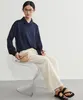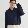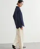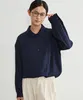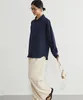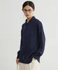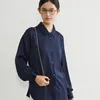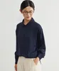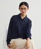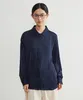 KNGC628・アイレット風ジャカード織りきれいめ艶感ハンサム長袖シャツブラウス NAVY-FREE