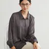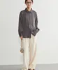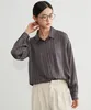 KNGC628・アイレット風ジャカード織りきれいめ艶感ハンサム長袖シャツブラウス CHARCOAL-FREE
