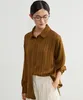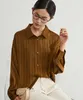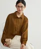 KNGC628・アイレット風ジャカード織りきれいめ艶感ハンサム長袖シャツブラウス KHAKI-FREE