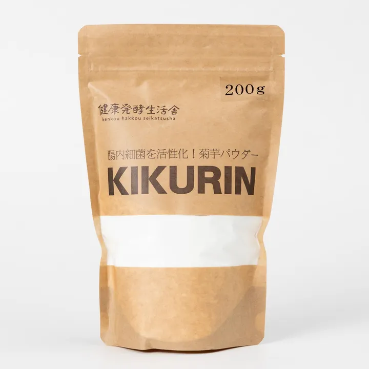 【 支持され続けている理由は圧倒的なイヌリンの含有量! 】 当社の菊芋パウダーはイヌリン含有量がなんと90%! 農薬や化学肥料を全く使わないで育てた天然の菊芋を100%使用しています。 ・ごぼうの12倍 ・ほうれん草の32倍 ・たまねぎの18倍 ・長ネギの15倍 ・ニンニクの8倍 🟠 菊芋に含まれる栄養素 イヌリンー血糖値の上昇抑制、腸内環境を整える、糖分・塩分・脂肪分の吸収抑制 サポニンー免疫力アップ、血流改善 ビタミンB群ー成長促進、疲労回復、エネルギー生成 亜鉛ーインスリンの貯蔵、機能に関わる成分 ポリフェノールー抗酸化作用、脂肪燃焼 ペクチンーコレストロール値の低下 セレンー活性酸素を除去、SOD酵素の主成分 【 主成分のイヌリンとは? 】 ・多糖類 ブドウ糖に加糖が2〜30個ほど繋がった果糖の重合体で、人間の消化器では分解できない(分解できる酵素がない)ため、大腸の腸内細菌叢によってはじめて代謝されます。 ・水溶性の食物繊維 水に溶けやすい性質の食物繊維で、血糖値の上昇抑制・腸内環境正常化・ダイエット・悪玉菌増殖抑制などの作用があります。 ・プレバイオティクス 善玉菌など有用菌のエサとなり腸内フローラのバランスを整えます。 【 イヌリンは腸内細菌のエサ率が100%! 】 ① 腸内細菌には、善玉菌・悪玉菌・日和見菌の3種類があり、善玉菌は我々の健康維持に関係しています。 ② 善玉菌の代表的な菌にはビフィズス菌や乳酸菌があり、発酵食品などから摂ることができます。 ③ その善玉菌たちのご飯が「水溶性食物繊維イヌリン」なのです!イヌリンは海藻や野菜などにも含まれています。 ④ 腸内細菌のエサになる割合(資化率)に差があり、水溶性食物繊維イヌリンは、なんと100%利用されます! 1つでも当てはまる方におすすめです。 ・食生活が不規則 ・美容などの意識が高い ・菊芋に興味がある ・甘いもの、パンや白米が大好き ・自然素材で健康維持がしたい ・飲み会などの外食が多い 【 世界市場でのイヌリン 】 ⚫️ 水溶性食物繊維市場の3/5をイヌリンが占める 2016年の水溶性食物繊維世界市場は約1,000億円。そのうち約600億円をイヌリンが占めています。 日本ではコスト面などから難消化性デキストリンが選ばれる事が多いですが、世界ではイヌリンの機能性の高さが注目されていることが分かります。 日本国内での天然のイヌリンの生産量は少なく、そのほとんどを輸入でまかなっています。 ⚫️ 地域別イヌリン需要(2016年) 1、欧州48% 2、北米33% 3、アジア・大洋州14% 4、その他5% 【 安心・安全な農場で栽培されています 】 原材料の菊芋は、農薬・化学肥料を一切使わずに育てたもののみを厳選して使用、その中の成分「イヌリン」のみを抽出して製品化しております。徹底した安全管理のもと、清潔で高品質な製造工程で、信頼できる製品をみなさまにお届けしております。 【 使い方は無限大! 】 毎日の習慣化で、無理なガマンや食事の罪悪感にサヨナラ。 「飲み物に」 すぐにサッと溶け、ほとんど味も変わらない(ほんのりした甘味)ので使いやすいです。 「お味噌汁に」 イヌリンは加熱してもほとんど変化しないので、お味噌汁に入れても大丈夫です。 「納豆は最適」 納豆菌は善玉菌でありながら、元々腸にいる善玉菌の働きを助ける最強食品! 「ヨーグルトに」 イヌリン(水溶性食物繊維)とヨーグルの乳酸菌の相乗効果も期待できます。 「苦手な方は」 カレーやシチュー、ハンバーグといった濃い味付けの料理に入れるのがオススメです。 ■ 基本の摂取方法 基本、朝昼夜いつでも構いませんが、朝食時に摂取すると、より効果が期待出来るようなのでオススメです。 1回、付属のスプーンで1杯(3〜5g)程度お飲みください。 *アトピーや癌、又は高血圧の方などは、2〜3倍の量を摂取することをオススメ致します。 ・商品名 : KIKURIN(キクリン) ・名称 : イヌリン(菊芋由来)国内製造 ・原材料 : 菊芋 ・内容量 : 200g ・保存方法: 高温多湿を避けて保管 ・販売者 : 大輝有限会社 ・賞味期限: パッケージ枠外下部に記載(製造から1年半) 【 栄養成分表示 】100gあたり・推定値 ・エネルギー 390kcl ・炭水化物 95.5g ・タンパク質 0.5g ・食塩相当量 0.1g ・脂質 0.7g ・カリウム 25mg ■ JANコード 4571559560711