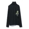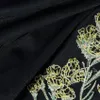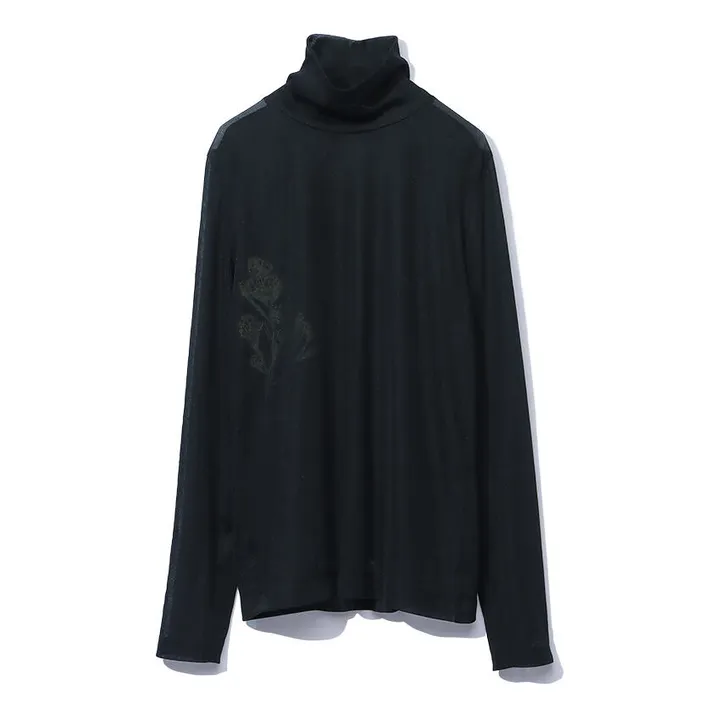 背中の刺繍は今回のコレクションのテーマである、黄色いスターチスの花。 5色の刺繍糸によって表現したオリジナルの刺繍図案と色配色です。 ブラック、イエロー、ベージュ3色に合わせ、違う配色の刺繍が施されています。 シースルー素材に合わせて糸の番手を調整してあるため、 他の品番とも違う仕上がりになっています。