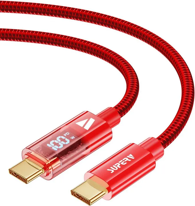 SUPERV Rt4 急速充電 USB C to C ケーブル [100W PD対応 1m] LEDディスプレイ内蔵 iPhone Android 各種対応 レッド