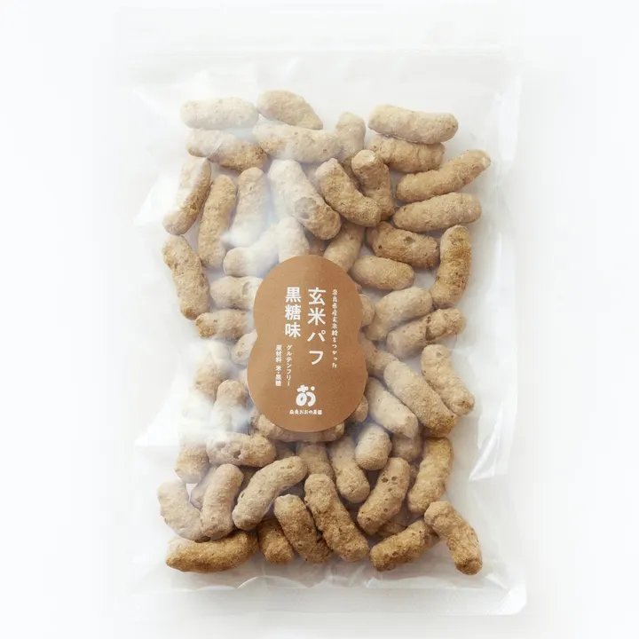 ●黒糖 ノンフライ製法でつくったヘルシーなお米スナックです シンプルな「お米+黒糖だけ」のおやつです 甘いものが欲しいけど、白砂糖はさけたい方に沖縄産多良間の黒糖を使って作りました。 この黒糖味は3種の中で一番パンチがあるので、スナック好きの方や、男性にも人気です。 == 300年続くお米農家の私が育てたお米を使いサックサク食感に仕上げたスナック菓子です ●「玄米パフ」の特徴 1. 主な原材料は玄米 玄米パフの主な原材料は、奈良おおの農園の玄米です。 2.サックサク食感の大人のおやつに ノンフライ製法でつくったヘルシースナックなので、サックサクの軽い食感で食べ出したら止まりません!さらに黒糖やお塩の美味しさも追求した事で、子供から大人まで楽しめる素朴なおやつが出来上がりました。 3. 保存料など添加物は一切不使用で優しい味に仕上がりに! お米の甘みや香りが感じやすい、シンプルで素朴なプレーンタイプをはじめ、塩味は沖縄宮古島産お塩のみ、黒糖味は沖縄産黒糖のみとこだわりの原料でシンプルに味付けしています。優しい塩味、甘さ控えめの甘さとなっています。もちろん保存料など添加物は一切不使用です。 「お子様向けの無添加のおやつ・離乳食」として、また「グルテンフリー・罪悪感のないものを求める健康意識の高い女性」にお届けしたいと考えています。 ===試作段階でのお客様からのレビューコメント=== 黒糖 ●30代ママ うちの我が子2人は、黒糖味を取り合いになるほど食べました。普通にお菓子としておいしかったようです!甘さ控えめなのがママとしても助かります。プレーンもいいなあと思いました! 普段グミやらポテチやら食べているのでたまにはこんな優しいお菓子も食べさせてあげたいです。笑 ありがとうございました(*^^*) 黒糖+塩 ●お米のお客様=40代主婦 このあいだは、お菓子の試食を沢山いただいてありがとうございました。 感想をお送りします。 娘(6歳)黒糖味が一番好き甘くておいしい サクサクがいい  息子(10歳 塩味が好き 食べると止まらないサクサク感がすき  私は 自然派なお菓子が好きなので、子供に安心して食べさせられるお菓子が嬉しい どの味も素朴で好きでした  ===●「やさしいおやつ」シリーズの経緯とコンセプト 新しい「やさしいおやつ」シリーズとして、「玄米パフ」を販売開始しました。 弊社代表の大野が東京会社員時代、娘が卵アレルギーになり、高級店でも食べられるものが手に入らない経験をしたことで、Uターンし農家を継いだ事を機に、卵不使用いちごクッキーを開発に着手しました。 その後 小麦粉・卵・乳製品・白砂糖不使用を使わず作った「グルテンフリー玄米きな粉クッキー」や、今回の お米だけのおやつ「玄米パフ」3種類のおやつの開発して参りました。 「やさしいおやつ」シリーズは、乳児幼児の「味覚形成に大切な時期」に食べるおやつだからこそ、素朴でシンプルな素材で作ることを重視しています。 さらに保存料添加物を使わないながらも、食感や美味しさを追求していますので、健康意識の高い大人の女性にも喜ばれる商品となりました。 ==原材料== ●黒糖味 □原材料名: 玄米(奈良県産ヒノヒカリ)、黒糖(沖縄県産) □内容量:【70g入り】 簡易包装 □賞味期限:製造日より180日 □アレルギー表示対象品目:7大アレルゲンなし (※本品製造工場内に小麦粉の持ち込みはございません。但しアレルギー28品目中「乳、卵、アーモンド」を含む製品を生産しています。) □保存方法:直射日光・高温多湿を避けて。保存してください。 □栄養成分表示 黒糖味1袋70g当たり エネルギー276kcal タンパク質3.3g 脂質1.3g 炭水化物62.7g ナトリウム7.7mg 食塩相当量0.02g (このお菓子は、福祉施設の方々に、私の考えをご理解共感いただき 就労支援利用者様にお一人お一人の得意を活かして優しく丁寧に製造していただいております。 本事業は農福連携のひとつのカタチになっております。)
