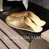 本革を使用した室内専用履物(いわゆるスリッパ)。 ヤマト独自の立体仕上げによる履き心地は足を優しく包んでくれます。 ひとつひとつの洗練されたディテールのReelaらしさに少しエレガントさを加えました。 しっとりとした奥行きのある日本らしい色合いに仕上げたグロスシリーズは 大人の日常を彩る上質な雰囲気を楽しめます。 甲に本革を使用し、ライニングやインソール&アウトソールを日本製人工皮革でまとめました。 毛足の短いシルキーな起毛素材は脱げにくく、滑りにくくなっています。 履き初めから足にフィットし、まるで履いていないかの様に付いてきてくれます。 使う毎に愛着が深まる、、 染色された革は時折メンテナンスする事でツヤを取り戻し色合いも深くなります。 POINT 01| 日本製の上質な本革を使用 本革だから2つと同じものは作れません革の断面はムラや傷がたくさんあります。その自然なダメージもオリジナル感を作り出しています。履けば履くほど馴染んでいく本革の魅力をReelaでお楽しみください。 POINT 02| 4層構造で足取り軽快に! 見えない所に4層構造の工夫 オリジナルクッションは粘りと耐久性を持ち、かかとがGood!芯材は薄く、でもコシはしっかり!! 軽量で足にフィットするから、足取りも軽くなります。 POINT 03| 少し短めが歩きやすさの秘訣 素材や機能性も重要ですが、履物のフィット感はサイズも重要なポイントです。 一般的にスリッパやサンダルは大き目のものを使われる方が多いと思われますが、 Reelaのオススメフィッティングはかかとが少し出るか出ないかのサイズ感を推奨しています。