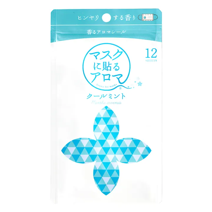 100%天然アロマオイルを浸透させたシールで、マスクに貼るだけでマスク内をアロマの香りで包みこまれます。 マスク装着時のニオイの不快感を緩和してマスクを付けるのが楽しくなります♪ シールには香りをイメージしたイラスト入りなので、貼るだけでオリジナルマスクに変身します。 メントールの配合量が多い和種薄荷(ハッカ油)を使用。 眠気も覚める強い清涼感は夏場や運動中などマスクが息苦しく感じる時にオススメです。 【内容】 12枚入り (1シート(6枚)×2) 【生産国】 日本 【使用精油】 和種薄荷(精油産地:インド)