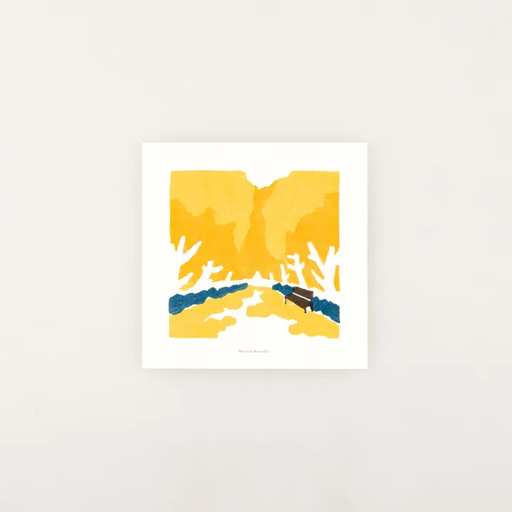 ※フレームは別売りです <デザイナープロフィール > 大川菜々子 / Nanako Okawa 香川県小豆島出身。武蔵野美術大学大学院版画コースを修了。伝統的な技法を現代的な感性で表現する木版画作家。日常の何気ない物事や風景を、柔らかく曖昧な色使いで温かみのある作品として描き出す。主に都内のギャラリーを拠点に個展やグループ展を開催し、定期的に作品を発表している。 <About the Paper> 発色の良さと紙の風合いという相反する性質を高いレベルで両立させた高級印刷用紙で、FSC認証※も取得しているヴァンヌーボV-FSの最厚紙を使用。 ※FSC認証とは「森林の管理や伐採が環境や地域社会に配慮して行なわれているかどうか」を評価・認証し、そうした森林に由来する製品(適正管理された森林木材による製品)であることを証明するものです。運営は、NGOであるFSC(Forest Stewardship Council®:森林管理協議会 本部ドイツ)が行っています。 <サイズバリエーション> ・200×200mm ・300×300mm