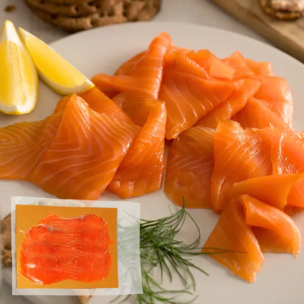 \世界のシェフが認めたタスマニアサーモンのスモークスライス/ きれいなタスマニアの環境で育ったサーモンは、臭みがなくあっさりとした脂が特徴です。 そんな最高級のタスマニアサーモンを、低温でじっくり燻製しました。 こだわりの減塩仕上げで、お料理にも使いやすくて便利♪ まるで生のお刺身のようなぷりっとした食感のスモークサーモンです。 飲食店での提供や、小売店での冷凍販売にもおすすめです。