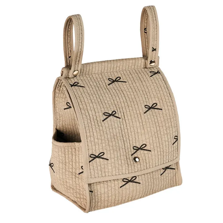 使いやすさとデザイン性を兼ね備えた吊り下げタイプのおむつストッカー 毎日のお世話にそっと寄り添い、ママの気分を上げるお洒落なデザイン。 優しいカラーのヌビ生地と繊細な刺繍が可愛い♪ 1枚ずつスッと取り出せて上から補充もラクラク! 蓋つきなのでホコリを防ぎ、衛生面も安心です◎ サイドポケットには体温計やつめ切り、保湿剤等のヘルスケア用品を入れておくのに便利。 取っ手部分はスナップボタンを採用しており、簡単に取り外しが可能です。 お子さまの成長に合わせて、吊り下げから床置きに変えてお使いいただけます。 おむつを卒業した後も、車のヘッドレストに吊り下げてティッシュケースとして使ったり、 ペットとお出かけの際にペットシーツやおやつ入れにも◎