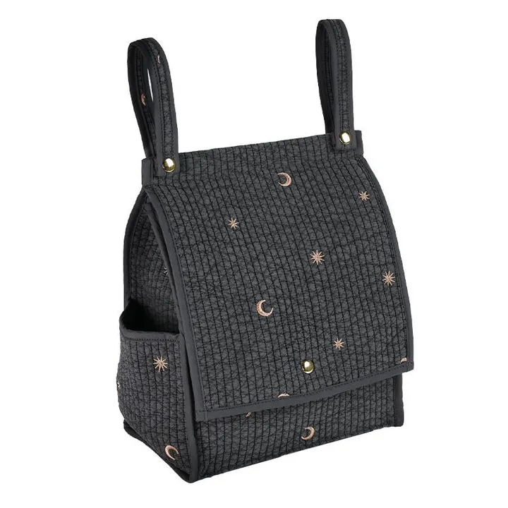 使いやすさとデザイン性を兼ね備えた吊り下げタイプのおむつストッカー 毎日のお世話にそっと寄り添い、ママの気分を上げるお洒落なデザイン。 優しいカラーのヌビ生地と繊細な刺繍が可愛い♪ 1枚ずつスッと取り出せて上から補充もラクラク! 蓋つきなのでホコリを防ぎ、衛生面も安心です◎ サイドポケットには体温計やつめ切り、保湿剤等のヘルスケア用品を入れておくのに便利。 取っ手部分はスナップボタンを採用しており、簡単に取り外しが可能です。 お子さまの成長に合わせて、吊り下げから床置きに変えてお使いいただけます。 おむつを卒業した後も、車のヘッドレストに吊り下げてティッシュケースとして使ったり、 ペットとお出かけの際にペットシーツやおやつ入れにも◎