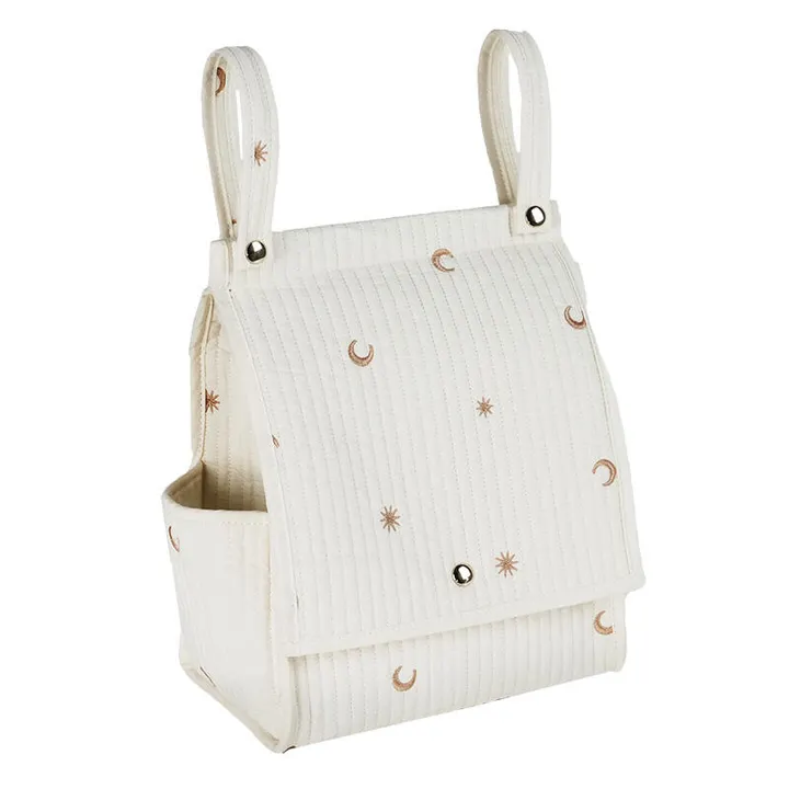 使いやすさとデザイン性を兼ね備えた吊り下げタイプのおむつストッカー 毎日のお世話にそっと寄り添い、ママの気分を上げるお洒落なデザイン。 優しいカラーのヌビ生地と繊細な刺繍が可愛い♪ 1枚ずつスッと取り出せて上から補充もラクラク! 蓋つきなのでホコリを防ぎ、衛生面も安心です◎ サイドポケットには体温計やつめ切り、保湿剤等のヘルスケア用品を入れておくのに便利。 取っ手部分はスナップボタンを採用しており、簡単に取り外しが可能です。 お子さまの成長に合わせて、吊り下げから床置きに変えてお使いいただけます。 おむつを卒業した後も、車のヘッドレストに吊り下げてティッシュケースとして使ったり、 ペットとお出かけの際にペットシーツやおやつ入れにも◎