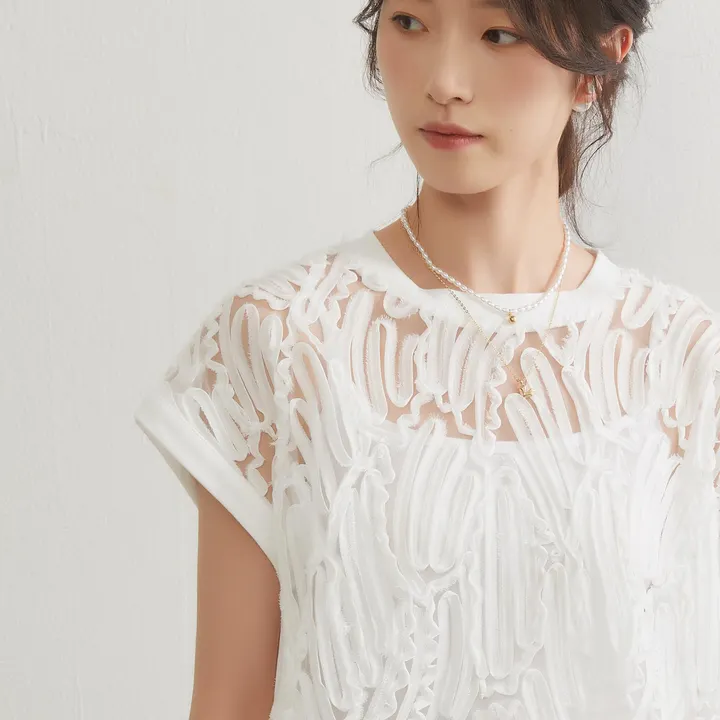 KNGT617・テープ刺しゅうシアートップ FREE/WHITE