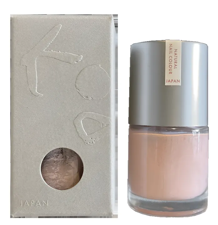 日本暮らしを彩る古代の色、土から取れるベンガラの色そのままをネイルにしました。 土そのものの色であるベンガラは肌にやさしいだけでなく、たとえば焼き物を作るときにかんじるような、 農作業で土をさわるときに感じるような、あったかい安心するような、癒しのエネルギーをもっていると言われています。 ベンガラは焼く温度(酸化)によって粒の形が変形し、その変化がさまざまな色をうみだします。 古くから日本画、能面、神社仏閣の壁画、天井画などの白色、または下塗り剤として使用されてきた胡粉(ホタテ貝殻の粉) を配合し、べんがらの色をより美しく引き立てるとともに、豊富に含むカルシウム、マグネシウム、亜鉛などのミネラルが 爪を保護、保湿し、美しく健康に保ちます。 原料はベンガラ、胡粉、天然ゴム、食品添加物である増粘剤とアクリル、ポリウレタンを使用した有機溶剤フリーの水性。 一部を除いて、ほとんどが天然素材というネイルの概念をくつがえす、安心安全、自然の美しさを生かしたネイルです。 通常のネイルに用いられる有機溶剤による強いにおいや、爪への負担もありません。 古代ネイルは内容成分の多くが安全な天然素材でできているため、通常のネイルと比較してとれやすくできています。 One Dayネイルとして、痛んだ爪をやすめるときや、お子様のネイルとして、またペディキュアにも適しています。 ネイルは専用のネイルリムーバーか、消毒用のエタノール75%以上のもので、コットンに含ませて落としてください。 除光液を使用することなくネイルを落とすことができますので、爪への負担を軽減します。 ・水性で自然素材でできていますので、ネイルをご使用の際は、爪表面の汚れや油分を落としてからハケに適量取って、のばすように塗ることで美しく仕上がります。 ・2度塗りするとさらにきれいに発色します。 ・マットな質感のため、トップコートを塗ることで艶が出て長持ちします。 ・べんがらの色をより長くおたのしみいただきたい方には、市販のトップコートの重ね塗りをおすすめいたします。 ・乾くまで一般的なネイルと同等の時間がかかります。 ・真珠貝の核(ボール状)がボトルの中に入っております。よく振ってからご使用ください。 ・お風呂などの水分によりネイル塗料が浮いてきますので、爪の根元からピーリングの要領で剥がすときれいに取れます。 ・エフェクト#01は大きな粒子のラメ、エフェクト#02は大きな粒子のラメのトップコートです。10色のカラーと組み合わせることで、異なる表情をお楽しみいただけます。 カラー原料:アクリル酸アルキルコポリマー・ポリウレタン-34・水・ホタテ貝殻の粉・酸化鉄(べんがら)・酸化チタン・ゴムラテックス・セルロースガム カラー:#ちちもも
