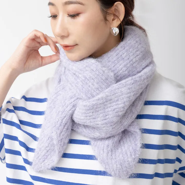リューズニット 毛足が長くふわっとしたポインティマフラー PU(パープル)