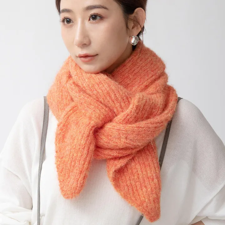 リューズニット 毛足が長くふわっとしたポインティマフラー OR(オレンジ)