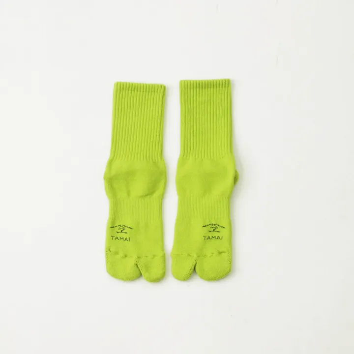 私の日々にとって欠かせない存在。 そんな思いから生まれた、足袋ソックスです。 足口のゴムをあえて通常よりも細くすることで、締め付けを和らげました。長時間の着用でも快適にお過ごしいただけます。 特殊加工により伸びが良く、男女問わず快適に着用可能。 足底部分にはパイル編みを採用し、クッション性と耐久性に優れているため、日常使いはもちろん、アクティブなシーンにも対応します。 スポーティなモデルでありながら、ストリートな表情も持ち合わせたデザインは、カジュアルな装いから都会的なスタイルまで幅広く活躍します。 表糸には抗菌防臭加工を施した綿100%糸を使用し、肌にやさしく清潔で快適な履き心地をお届けします。 確かな品質の日本製。 毎日の足もとを支えながら、スタイルにも遊び心をプラスする一足です。