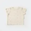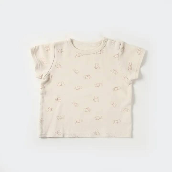 色々な表情がかわいい赤ちゃん柄のTシャツ -素材の特徴- 伸縮性のある柔らかなコットンフライスを使用。 肌触りも良く着心地も抜群です。 -デザインの特徴 ブランドアイコンの赤ちゃんプリント。 肩のスナップで衿元が大きく開き、お着替えも簡単です。 -ポイント- デザインから生産まで全て日本で作られている'All made in Japan' 職人さんが手作業で印刷を施す’手捺染(てなっせん)’という印刷技法を採用。 機械では出せない色味ややさしい雰囲気に仕上がっています。
