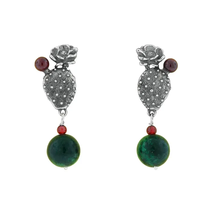 Aretes Flor De Nopal|サボテンのピアス(シルバー・ルビーインゾイサイト・天然石) スモーキークオーツ