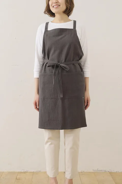 アトリエヌイ人気のオリジナル生地「ウォッシュドコットン」で作った定番エプロン。 生地洗いを施し柔らかく仕上げた綿素材の肌触りと、長時間着用しても疲れない使い心地の良さが人気です。