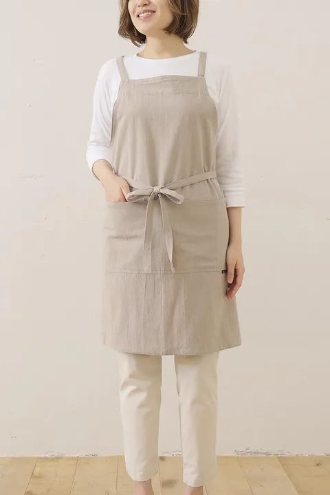 アトリエヌイ人気のオリジナル生地「ウォッシュドコットン」で作った定番エプロン。 生地洗いを施し柔らかく仕上げた綿素材の肌触りと、長時間着用しても疲れない使い心地の良さが人気です。