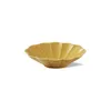 やさしい楕円のかたちに、花のようなレリーフが広がるうつわ。 放射状に伸びる模様を葉脈に見立て、薄く繊細に仕上げました。 葉脈の陰影を美しく浮かび上がらせる艶やかな釉薬が、上品な輝きを添えます。 シリーズの中では最も深さがあり、おひたしや和え物など、小鉢としての盛り付けにも使いやすい形。 季節ごとに移ろう葉の色を、釉薬の色で表現した一枚です。