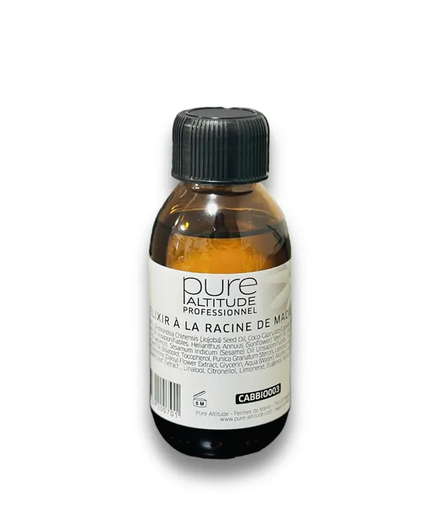 ホホバ種子油、ジカプリリルエーテル、酢酸トコフェロール、ヒマワリ種子油、ヨーロッパキイチゴ種子油、ビサボロール、香料、コムギ胚芽油不けん化物、ゴマ油不けん化物、アブラナステロールズ、トコフェロール、レピジウムメイエニ根エキス、パルミトイル加水分解コムギタンパク、ヒナギク花エキス、パルミチン酸、水、グリセリン、エタノール、エーデルワイスエキス