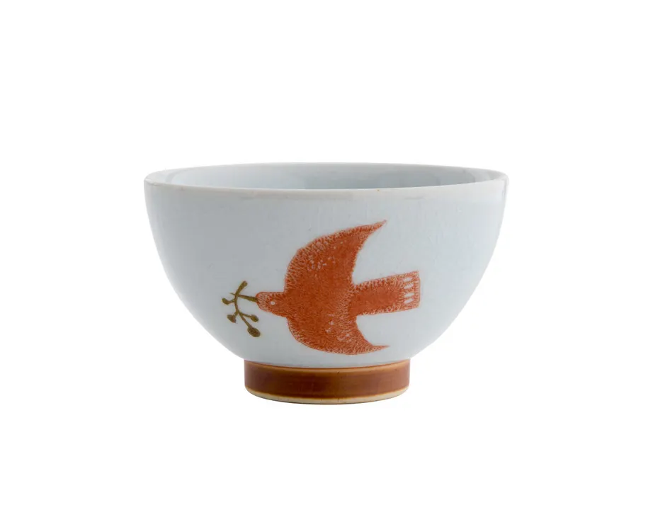 くちばしに木の実をくわえたカモメが一羽飛んでいます。 白磁に大胆なスタンプで表現した柄を配し、シンプルながらカジュアルな印象に仕上げました。 これから新しい生活を始める方々へ、同じ柄の展開があるクッカロッキのプレートシリーズと合わせておすすめされてください!