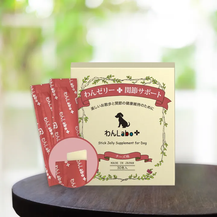 <獣医師監修> 当店のゼリー人気No.1 わんちゃんが大好きなチーズ味 × お手軽ゼリー 「わんゼリー+関節サポート」 続けやすさと美味しさにこだわって開発したわんちゃん用ゼリーです。 「N-アセチルグルコサミン」 「エラスチンペプチド」 オメガ3系脂肪酸の「亜麻仁油」配合で、愛犬の関節をサポートします。更に、40種類以上の果実や野菜を熟成酵素が健康を維持し、免疫力をサポートします。 わんちゃんが大好きなチーズ味なので、食いつきもバツグン! 野外イベントでは、冷やして試食していただいていますが、食いつき、人気ともにNo.1です! <商品について> 名称:犬用健康補助食品 成分名:イソマルトオリゴ糖、 チーズパウダー、N- アセチルグルコサミン(えび・かにを含む)、 亜麻仁油、 寒天、グルコマンナン、 濃縮植物発酵エキス(熟成酵素)、 エラスチンペプチド(魚由来)、pH調整剤(クエン酸) 原産国 :日本 保存方法: 直射日光・高温多湿を避けて保存してください。 <使用上のご注意> 本品は愛犬と愛猫用です。使用中に異常があらわれたときはすぐに使用を止め獣医師に相談してください。 ペット及びお子様の手の届かないところで保管してください。天然成分を使用しているため色調や香りに若干差が生じる場合がありますが、品質に問題ありません。 \ こだわりの成分を配合 / わんちゃんの健康維持におすすめの安心の原料を配合しています。 ~自社培養素材 熟成酵素”ビオチーム”~ 40種類以上の野菜や果実を酵素を独自の有用菌で半年以上発酵・熟成させた植物エキス酵素(タンパク質)を、吸収されやすいアミノ酸やペプチドとし、その他有用物質を豊富に含んだ熟成酵素が配合されています。 ~ Nアセチルグルコサミン ~ カラダの成分と同じ天然型のグルコサミンです。軟骨やヒアルロン酸の生成に関与し、関節の健康維持をサポートします。 ~ エラスチンペプチド ~ カツオ由来の原料で、全身の弾力や伸縮に関与する成分です。 低分子化されているので、吸収が良く、関節の健康維持をサポートします。 ~ 亜麻仁油 ~ 亜麻の種子から得られる油で、必須脂肪酸であるオメガ3系脂肪酸を含みます。良質な油を摂ることが関節の健康維持に繋がります。
