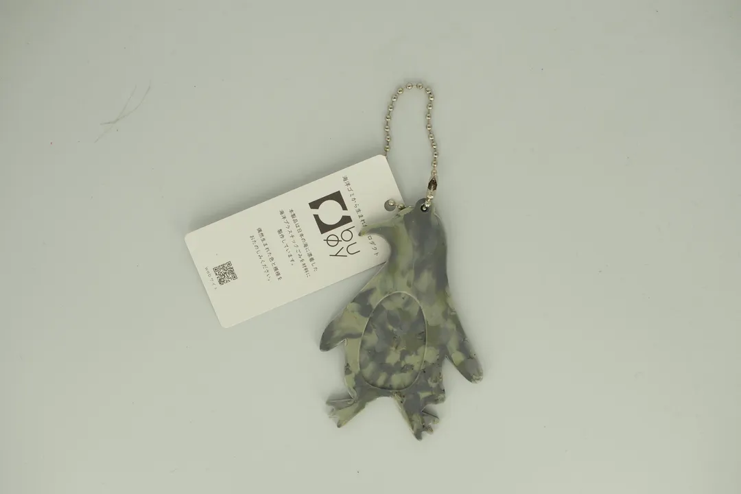 ペンギンの形のキーホルダーです。 buoyの製品は全て日本各地で回収された海洋プラスチックごみを材料に作っています。着色などの加工を加えず、偶然海岸に漂着した色味でできています。 明るい発色が特徴のプラスチックですが、複数の色が交じり合うことでちょっと有機的なモザイク模様が特徴です。 製品にはひとつひとつゴミの漂着地域が明記されています。日本で起きている海洋ごみの問題をリアルに感じることができます。 また、商品に添付されているQRコードを読み込むとそれぞれの回収を行ったビーチクリーン団体さんの情報を見ることができます。 ------------------------------------------------------------------- 海洋プラスチックごみを材料に変える独自技術buoyの特徴 (buoyは海洋プラスチックごみ素材使用を前提にした株式会社テクノラボの独自技術により成形しています。株式会社テクノラボは本技術において特許取得済み) ◆材料を分けないで成形するため生まれる独自の模様 材料はすべて着色せず海洋ごみの色を活かして成形しています。偶然生まれる色と模様は回収された漂着ごみによって決まります。 ◆製品の重さが海洋ごみの重さ 製品をコーティングしているフィルム以外、混ぜ物などせず海洋ごみでできているので製品の重みから海洋ごみ問題を感じられます。 ◆製品にすべて材料の漂着地を明記 buoyは日本各地のビーチクリーンボランティアや企業の方から材料を提供していただいています。これらの材料は時期と地域を分けて管理され、製品にはすべて材料産地のシールを貼り販売しています。 buoyの材料産地をきっかけに回収された地域のことを知ってほしいとの思いからbuoyでは団体様の紹介ページを作成しています。 http://www.techno-labo.com/rebirth/partner/ -------------------------------------------------------------------