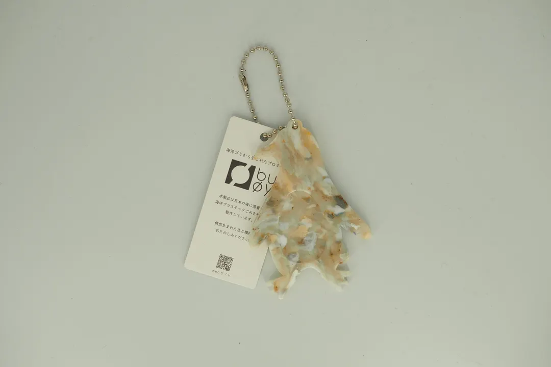 ペンギンの形のキーホルダーです。 buoyの製品は全て日本各地で回収された海洋プラスチックごみを材料に作っています。着色などの加工を加えず、偶然海岸に漂着した色味でできています。 明るい発色が特徴のプラスチックですが、複数の色が交じり合うことでちょっと有機的なモザイク模様が特徴です。 製品にはひとつひとつゴミの漂着地域が明記されています。日本で起きている海洋ごみの問題をリアルに感じることができます。 また、商品に添付されているQRコードを読み込むとそれぞれの回収を行ったビーチクリーン団体さんの情報を見ることができます。 ------------------------------------------------------------------- 海洋プラスチックごみを材料に変える独自技術buoyの特徴 (buoyは海洋プラスチックごみ素材使用を前提にした株式会社テクノラボの独自技術により成形しています。株式会社テクノラボは本技術において特許取得済み) ◆材料を分けないで成形するため生まれる独自の模様 材料はすべて着色せず海洋ごみの色を活かして成形しています。偶然生まれる色と模様は回収された漂着ごみによって決まります。 ◆製品の重さが海洋ごみの重さ 製品をコーティングしているフィルム以外、混ぜ物などせず海洋ごみでできているので製品の重みから海洋ごみ問題を感じられます。 ◆製品にすべて材料の漂着地を明記 buoyは日本各地のビーチクリーンボランティアや企業の方から材料を提供していただいています。これらの材料は時期と地域を分けて管理され、製品にはすべて材料産地のシールを貼り販売しています。 buoyの材料産地をきっかけに回収された地域のことを知ってほしいとの思いからbuoyでは団体様の紹介ページを作成しています。 http://www.techno-labo.com/rebirth/partner/ -------------------------------------------------------------------