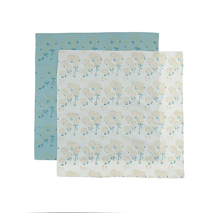 季節の訪れを知らせてくれる 金木犀柄のブロックプリントハンカチ GN