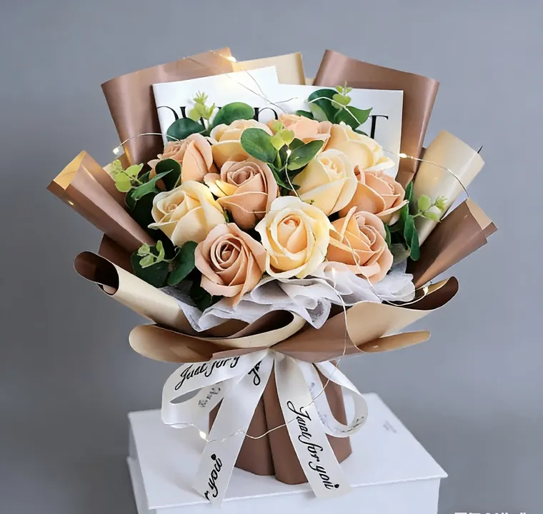 ※プレゼントに最適なソープフラワーの花束です。ほのかに石鹸の香りがする、石鹸素材から作られた造花なので、生花に比べて、長く鑑賞が楽しめます。 ※ソープフラワーとは花びら1枚1枚が石けんでできているお花です。 お花の大きさは生花と変わらない大きさでとっても華やかな上に枯れないので、 大切な思い出を美しいまま長く楽しむことができます。 ※ご注意:ソープフラワーは主に観賞用のみで、入浴剤としてのご使用はできませんので、ご注意ください。 ※金額が記載された書類(納品書・領収書等)は同封しておりません。 ※香りは全て同じではありません。香りが強い場合や弱い場合もあり、時間と共に香りは薄くなる場合がございます。 ※ハンドメイドで一つ一つお作りしてますので、同じものはございません。 ※包装紙は梱包や発送途中にシワや折れ目等が生じてしまう場合がございますが、ご理解いただいたうえ、ご注文をお願いいたします。 ※様々な用途に対応した万能ギフト 誕生日プレゼント、記念日、お見舞い、快気祝い、内祝い、出産祝い、引っ越し祝い、開店祝い、結婚祝いなど、 人生の節目に贈るギフトとして多くの方に選ばれています。 また、仏花・供花・お供え用としても使用されるなど、幅広いニーズに応えるアイテムです。 ※ギフトとして: 大切な人へ贈る際にも、ゴージャスな印象を与えることができます。 長期間枯れることなく飾って楽しめるため、プレゼントした時の思い出を残したい場合にもぴったりです。 ※母の日や卒業式などの特別な日にもぴったりです。枯れることのない造花なので、長期間保存も可能。 お部屋のインテリアとしてもお楽しみいただけます。品質にも自信を持っており、品質保証付きです。 大切な人への心のこもった贈り物として、是非ご検討ください。 ※直射日光や高温多湿の場所は避け、風通しの良い場所で保管してください。 豪華プラス・長持ちする枯れない花(Soap flowers)//ソープフラワーとは本物の花を一切使用せずに、 香りのよい石鹸素材のみで作られたお花というものです。安いですが、生き生きしており、 本物とそっくりですが生花とは違って枯れることがありません。 花粉症の方にも安心な魔法の花(Artificial flowers)//生花と違い、淡い石鹸の匂いがして、細菌の繁殖がなく、 この石鹸花は花粉がありませんのですから、お花が好きの花粉アレルギーの方へもいい品物です。 アレルギーが心配な方や病室などでも安心して飾ることができます。 手間がかからなく・持ち運びしやすい花束(Gift flowes)//水やりや肥料をあたえるお手入れが不要、 ほこりが付いたら軽くティッシュでふき取る程度の手入れをするだけで大丈夫です。