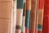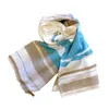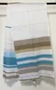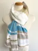 オーガニックコットンのランダムボーダーの大判ショール(100センチ×200センチ) マチボーダー:ブルー×ベージュ系