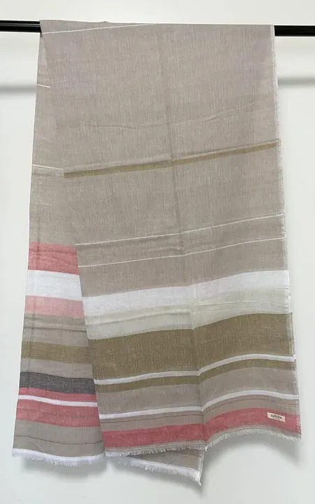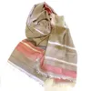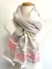 オーガニックコットンのランダムボーダーの大判ショール(100センチ×200センチ) マルチボーダー:ベージュ×ピンク系