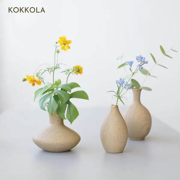 木の表情を纏った陶器の美 木の温もりを感じさせるような質感と、やさしいフォルムが特徴のこのベースは、まるで森の中から切り出されたような趣を持っています。シンプルでありながらも存在感があり、花を生けなくてもオブジェとして空間を彩る力を持っています。
