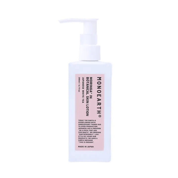 ■ 製品説明 -DESCRIPTION- 「奇跡の木」モリンガの種をコールドプレスして抽出したピュアオイル配合のスキンローションです。モリンガオイルに含まれた豊富な脂肪酸と4種の植物成分が化粧水と乳液の機能を実現。 しっとり滑らかな肌へ導きます。爽やかな和白茶の香り。 ■ ご使用法 -DIRECTION- 適量を手にとり、全身に優しくマッサージするように塗布してください。 ■STORY 【モリンガ】 モリンガにはビタミン・アミノ酸など生物に必要な90種類以上の栄養素とお肌に有効な数多くの脂肪酸が満遍なく含まれています。 地球上の可食植物でもっとも優秀と言われているモリンガは「奇跡の木」と呼ばれ、FAO(国連食糧農業機関)がアジア・アフリカなどの国々に植栽を促しています。 【モリンガオイル】 カンボジア国境に接するタイ王国サケオ県の178万�uの広さの農場を持つ有機栽培農家から、直接取り寄せたピュアモリンガシードオイルを配合しています。 MONOEARTHはモリンガの有機栽培農家を支援することでサスティナブルな社会の実現に貢献しています。 【和白茶香調説明】 茶葉の力だけでゆっくり発酵した白茶(ホワイトティー)のイメージを和の香りで創香しました。 趣のある老舗旅館に到着した際に、おもてなしの笑顔とともに供される歓迎の白茶。 爽やかさと華やかさが身体に染みわたり、旅の疲れを癒すひととき、そのような情景をイメージした香りです。 TOP:柚子・シークワーサー・緑茶 MIDDLE:抹茶・鈴蘭・ハマナス・オキナワソケイ BASE:白檀・檜・青森ヒバ "