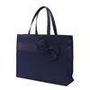 きちんとした印象を大切にした横型タイプのトートバッグです。 ネイビーとブラックの2カラー展開です。 ふんわりとしたおおきめグログランリボンがフェミニンな印象の横型スクエア型トートバッグです。 ベーシックなトートバッグは学校説明会や学校行事から普段使いまで幅広くお使いいただけます。 シンプルなシルエットは装いのクラス感をアップします。。 横マチもゆとりの10センチサイズ。 履いてきた外靴やA4サイズの封筒、配布書類もたっぷり収納できます。 ●ご購入されたお客様の声(一部抜粋) ・娘の入園に合わせてデザインが気に入り10年以上前に購入しました。使いやすく本当に長い間愛用しました。  リピート購入です。 ・以前もこのブランドのトートバッグを使用しており、使いやすく、お上品でかたちも崩れず丈夫なので横型を今回は購入しました。  どんな服装にも合うし大満足です。 今使ってるいるのが古くなってきたらリピートで購入します。