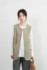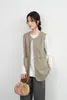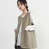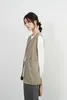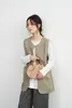 KNXJ509-ノーカラーベスト・きちんと見えてらくちんジレ・ポケット付きカジュアルオフィス GREEN/FREE