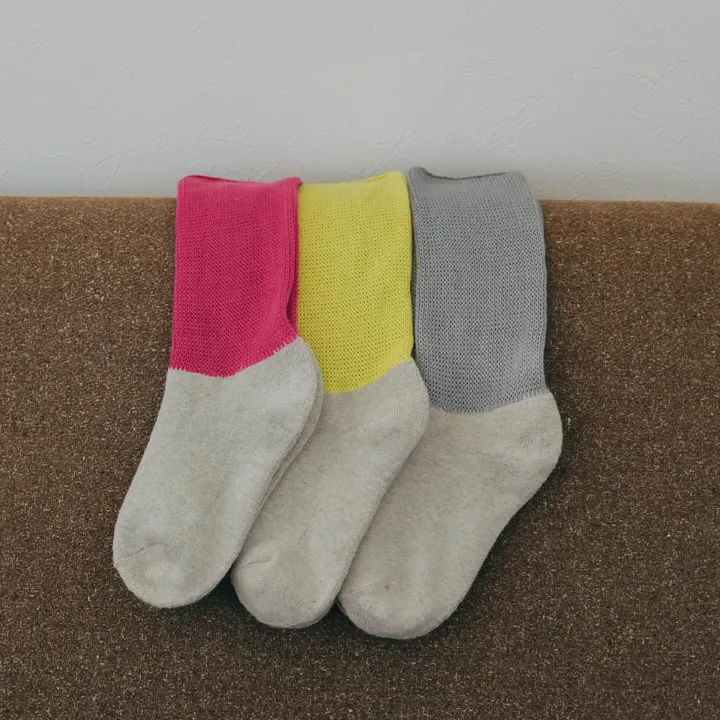 店舗さまの導入に向けた3色のサンプルセットです。 アッシュグレー  靴・パンツに合わせやすい色。 マゼンタ     店頭で注目される明るく元気な色。 イエローグリーン 派手差はありませんが、差し色に最適。 「炭糸パイルソックス」は、無農薬で栽培されたコットンをセラミック炭で染めた、独自の日本製の糸(KinoKoto の炭糸)を使用しています。 お部屋でのリラックスタイムや外出時にもぴったり。さらに、足首にはカラーが楽しめるウォーマーが付いているので、冷え対策も最適。忙しい日々を過ごす中でも、足元の快適さを手に入れて、ストレスフリーに過ごしていただきたい。新しい季節のスタイリングにもぜひ取り入れてみてください。 特徴 1:冷え対策 通常よりも糸量を多く使用した足底は、タオルのようなパイル編みで厚手です。指先の汗もしっかり吸収してくれるので、お部屋や外出時でも快適に着用いただけます。 特徴 2:ストレスフリー 足首ウォーマー付きで、足首の締め付けが極端にゆるく、脱ぎ履きしやすくなっています。 特徴 3:驚く消臭機能 汗臭3種類(酢酸・イソ吉草酸・アンモニア)はSEKマーク繊維製品認証基準に基づき調査されています。新品はこれらのニオイを99%以上消臭し、10回洗濯後も「酢酸」と「イソ吉草酸」は99%以上、「アンモニア」は90%以上の消臭効果を維持します。 ※セラミック炭は国内の間伐材を原料に使用しています。 ※パッケージは森林を適正に管理された上で作られるFSC認証の用紙を採用しています。 【使用上・洗濯後の注意】 ※足首部は編み目がゆったりしていますので、ひっかけにご注意ください。 ※履き口部分はやわらか設計のため、洗濯後まれに縫製糸が出る場合があります。 気になる場合は糸をカットしてご使用ください。品質・機能性には影響ありません。 森林環境にも配慮された靴下を、ぜひ気持ちよくお楽しみください。 【受賞歴】  雑誌 anan(アンアン)「カラダにいいもの大賞 2024秋」ファイナリストに選ばれました。