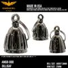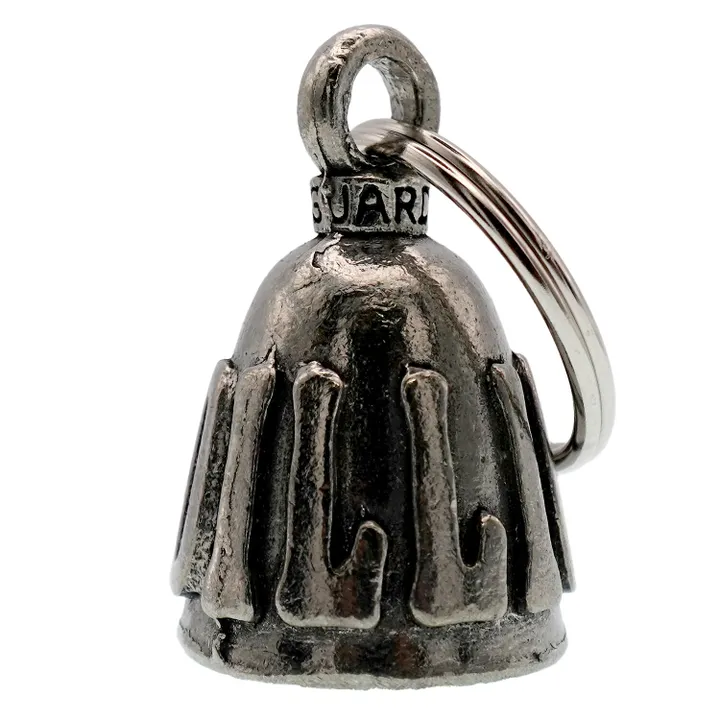 アメリカ製ガーディアンベル社製ガーディアンベルです。 MADE IN USA アメリカ製 交通安全 魔除け 御守り ガーディアンベル アメリカのライダーの間には、事故や、転倒の原因は「道路にひそむ悪魔」によるいたずらだという伝説があります。悪魔は走る者に悪戯やトラブルを運んできます。このベルは美しい音色で悪魔たちを追い払うと言われ愛されています。そんな悪魔のいたずらを防ぎ、御守りとなるのが、守護者のベルという意味を持つガーディアンベル。 日本でも鈴の音(ね)は神道では魔除けの音と言われています。ピューター製の鈴でいい音色でガーディアンベルはデザインも様々あります。 またガーディアンベルにまつわる伝説として、プレゼントとして送られたベルの効果は、自分で手に入れたものの2倍になると言われています。 それゆえに彼氏・彼女・友達・家族へのプレゼントとしての人気も非常に高まっています。 シルバーアクセサリーのようにおしゃれに装着できて素敵な音色を奏でるガーディアンベル。 バイカー以外にも自転車や旅・交通安全のお守りとしてお使いいただけます。 カバン・ランドセル・キーホルダー・ペットの首輪等に付けてお使いください!! ※タイラップ等でバイクのフレームにも簡単に取り付けできます。 アメリカンモデルだけではなく、旧車ファン、レプリカライダーまで、さらにバイクだけでなく、自転車や車にもピッタリな御守りとなっています。 アクセサリーとしても人気で、アイディア次第で車体だけでなく、キーホルダーや鞄など、どこにでも付けておしゃれに楽しめます。
