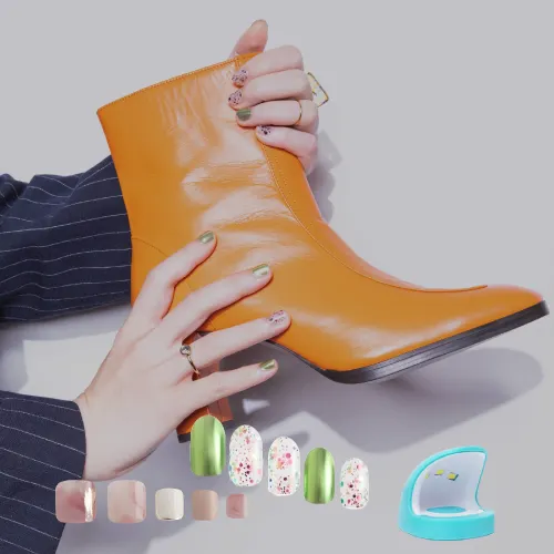 「NNNAIL(んーネイル)」は、約10分でサロン級の仕上がりが叶う&2〜3週間持続する時短ジェルネイルシール。 しなやかに伸びて爪にフィットする素材が、厚みのあるジェルネイルのような仕上がりと、なめらかな縁のカーブを実現。 忙しい毎日でも、貼るだけで誰でも簡単に本格的なネイルデザインを楽しめます。 セット_@ Transform Green (HAND用) 輝く宝石のような存在感で、パーティーや特別な日のコーディネートを彩るGLITTERシリーズから、一番人気デザインの「Transform Green」。 指先にきらめきを纏わせるラメネイル&ミラーネイルのセット。 爽やかなグリーンと遊び心のあるグリッターが爪先を軽やかに彩ります。 エネルギッシュかつアクティブな印象で、カジュアルなシーンにぴったり! セルフでは難しいミラーネイルやラメネイルも、シールならオン&オフ簡単です! _単品商品詳細はこちら セット_A NUANCE ROSE (TOE用) 足元からお洒落を楽しむ足指用ペディキュアシリーズ。 ローズピンクをベースに、ベージュとゴールドがやさしくとけ合うニュアンスデザイン。 ふわりとにじむようなマーブル模様が、足元に繊細な華やぎを添えます。 肌なじみがよく、どんなコーデにもさりげなく映える人気カラーです。 水に強く、色と質感にこだわったジェルネイルシールで、素足を、もっと自由に&もっと軽やかに。 _単品商品詳細はこちら セット_BChubby UV Light(硬化用ライト) ネイルシールの仕上がりを、もっと長く、もっと美しくする NNNAIL専用「ミニUVライト」は、シールを貼ったあとに約30秒の照射でしっかり硬化。 ツヤ感をキープしながら、ネイルの持ちをぐんとアップさせてくれるおうちネイルのマストアイテムです。 軽量・コンパクトなので、場所を選ばずどこでも使え、USB電源で簡単に接続可能。 初心者の方でも安心して使える設計です。 ネイルシールが浮きやすい、剥がれやすい…そんなお悩みも、UVライトでのひと手間で解決。 サロン級のツヤと密着力を、おうちで手軽に。 _単品商品詳細情報はこちら 【NNNAILはこんな方におすすめ】 ・ネイルサロンに行く時間がない方 ・爪を傷めずネイルを楽しみたい方 ・家事や仕事で忙しい方 ・お休みの日だけネイルを楽しみたい方 ・季節や気分に合わせてネイルを変えたい方 ・セルフネイルに挑戦したいネイル初心者の方