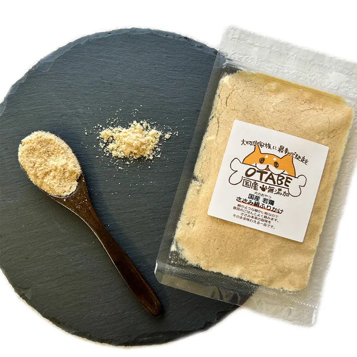 【大切な家族に最幸のごちそうを】 市場で仕入れた国産朝びき鶏を仕入れたその日に加工しています。素材を活かした製法で作られた完全無添加のささみふりかけです。 【ささみの魅力】 ・良質なタンパク質が健康な皮膚や毛並みを作ります。 ・低脂質高たんぱくなのでダイエットにも◎