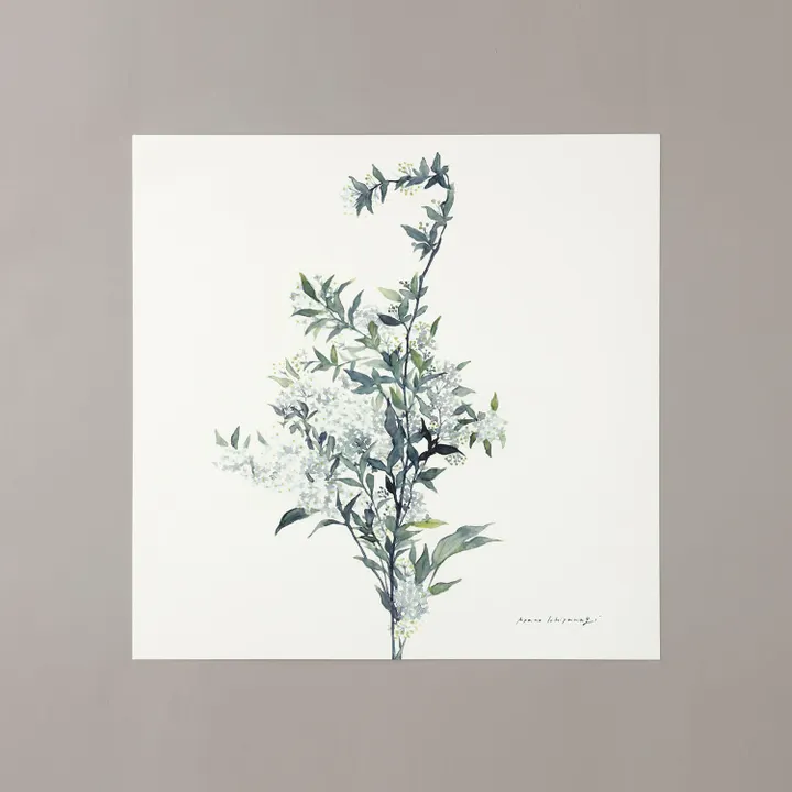※フレームは別売りです <デザイナープロフィール > 一柳綾乃(ayano ichiyanagi) 静岡県出身、在住。 グラフィックデザインを専攻し、絵描きとしての作家活動を開始。京都で伝統的な染色を学んだ後、「絵画を纏う」というテーマで布や服飾品を展開する。自然や植物をモチーフに、日々の暮らしの中から日記のように切り取って描かれた水彩画は、定期的に個展で発表されている。 <About the Paper> 発色の良さと紙の風合いという相反する性質を高いレベルで両立させた高級印刷用紙で、FSC認証※も取得しているヴァンヌーボV-FSの最厚紙を使用。 ※FSC認証とは「森林の管理や伐採が環境や地域社会に配慮して行なわれているかどうか」を評価・認証し、そうした森林に由来する製品(適正管理された森林木材による製品)であることを証明するものです。運営は、NGOであるFSC(Forest Stewardship Council®:森林管理協議会 本部ドイツ)が行っています。 <サイズバリエーション> ・200×200mm ・300×300mm