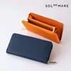 ーーー使い勝手の良さにこだわったラウンド長財布 大容量で使い勝手の良いラウンド長財布です。 上質な型押しレザーを使っているので、上品な雰囲気と傷が目立たずに色落ちもほとんどしないのが特徴です。 ーーーお財布の機能について 小銭が見やすく取り出しやすいマチ付きの小銭入れが1か所、カードが12枚収納でフリーポケットを3つ装備、マチ付き札ポケット2か所と収納力抜群。フリーポケットの1つは小銭入れの横につきレシートなどを入れるのに便利な仕様になっています。 ーーー素材について 厳選された国産の型押しレザーを使用。繊維のキメが細かい牛革キップ(子牛の革)に上品な型押しをした革は、海外ブランドに劣ることのない、上質な風合いが魅力。ヌメ革などと比較して、経年変化は穏やかです。 引手にSOLSOMAREのロゴが入ったブランドオリジナル仕様のファスナーはYKKエクセラファスナーを使用しているので、動きも滑らか。 ーーーブランドBOX入りでギフトにも最適 いつも頑張っている自分へのご褒美として、または大切な方への贈り物としても。 商品は一つ一つブランドBOXにお入れいたします。 ーーアイテム詳細 [サイズ] H:97 W:194 D:21 [機能] カード×12 ファスナー付コインポケット×1 フリーポケット×3 札入れマチ付きポケット×2 ファスナー×2(YKKエクセラファスナー) [カラー] オレンジ/ネイビーブルー ※掲載商品の色味は出来る限り実物の色味に近づけておりますが、ご利用のパソコン、スマートフォン、モニター環境によって、画像の色味が異なって見える場合がございます。予めご了承下さいませ。 [素材] 国産牛革キップ型押し/国産牛革スムース