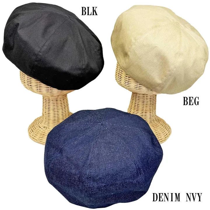 コットン ベレー帽 大きめ 大振り デニム 無地 年間 帽子 レディース メンズ DENIM NVY
